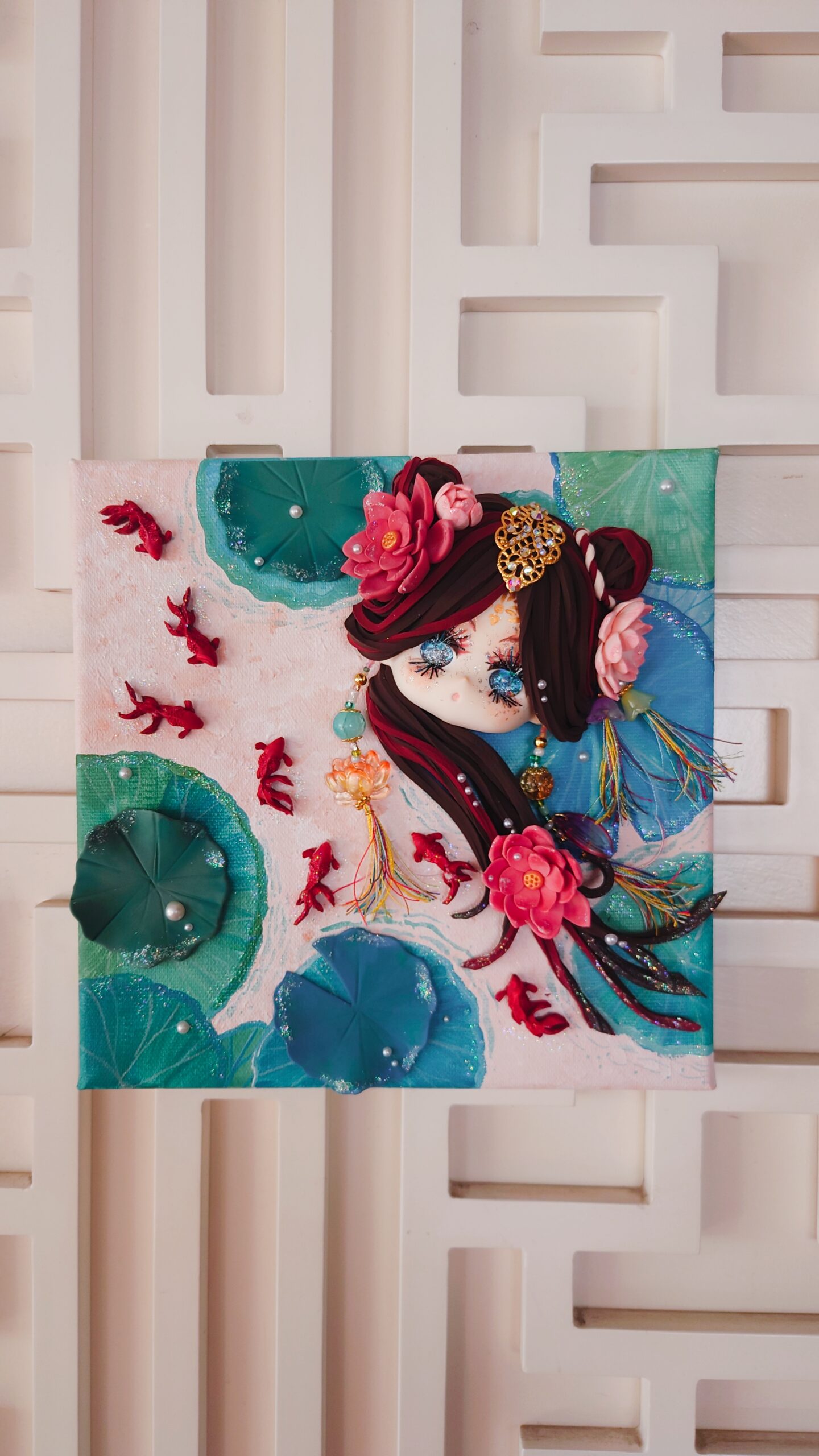 Lotus, Goldfish, and the Lady of Fortune – Textured Acrylic Painting