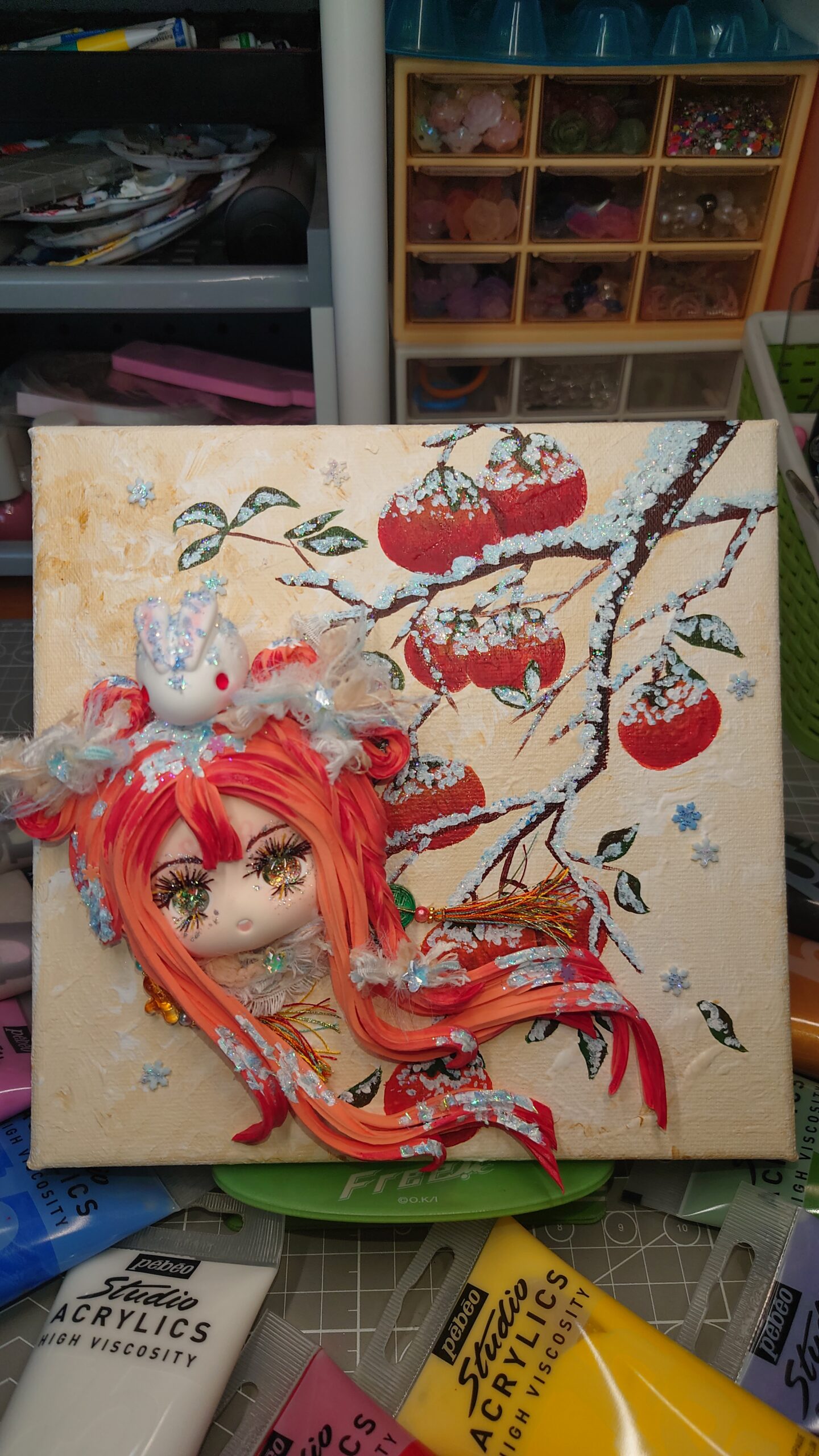 Wishing You Persimmon Luck – Textured Acrylic Painting